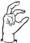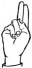 На ћирилици написано КСЕНИЈА БИЗУМИЋ састоји се из 14 слова [?]. Исписано ћириличном једноручном азбуком за глувонеме: